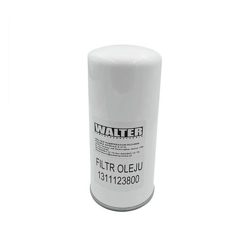 Filtr oleju znajduje się na początku obiegu smarującego i zapobiega dostawaniu się zanieczyszczeń na powierzchnie robocze rotorów bloku śrubowego i łożysk.